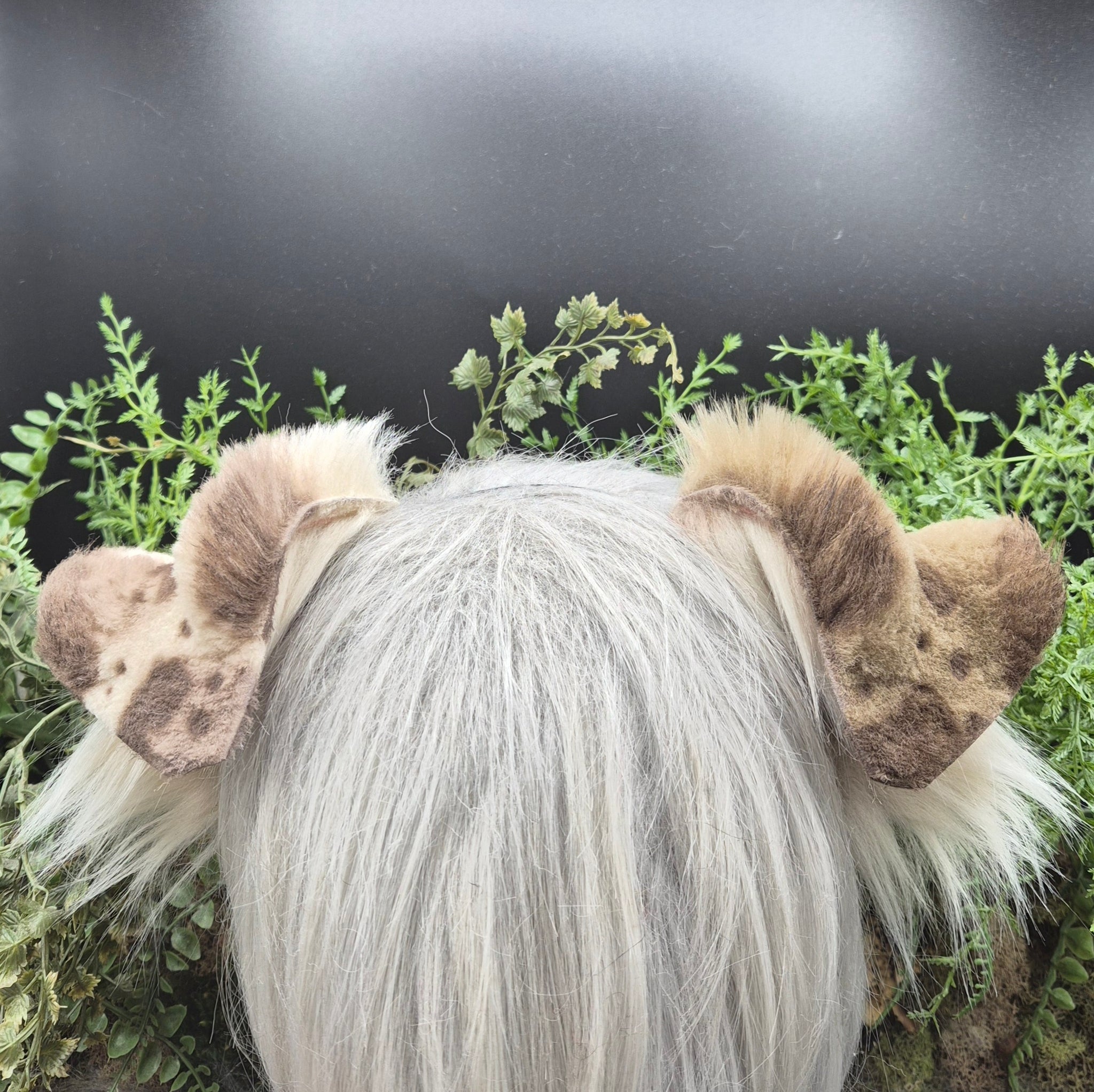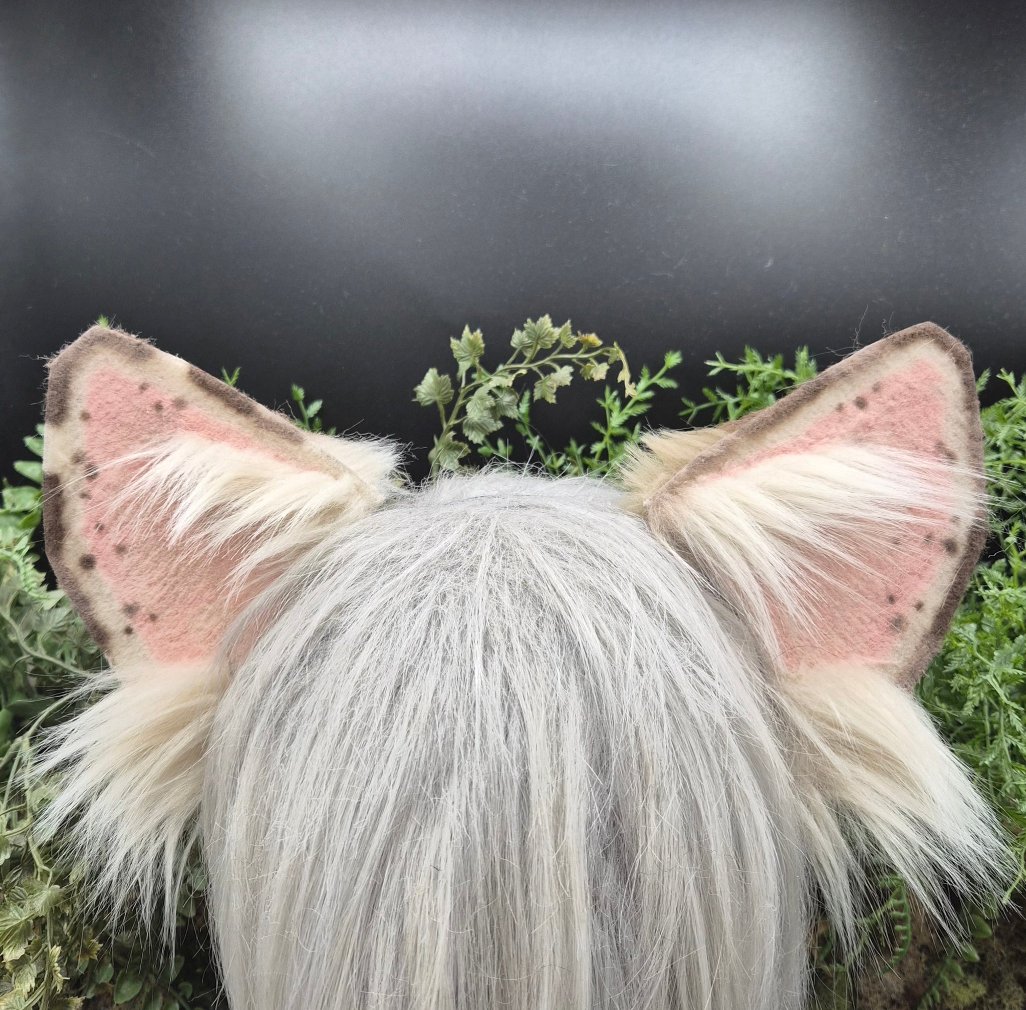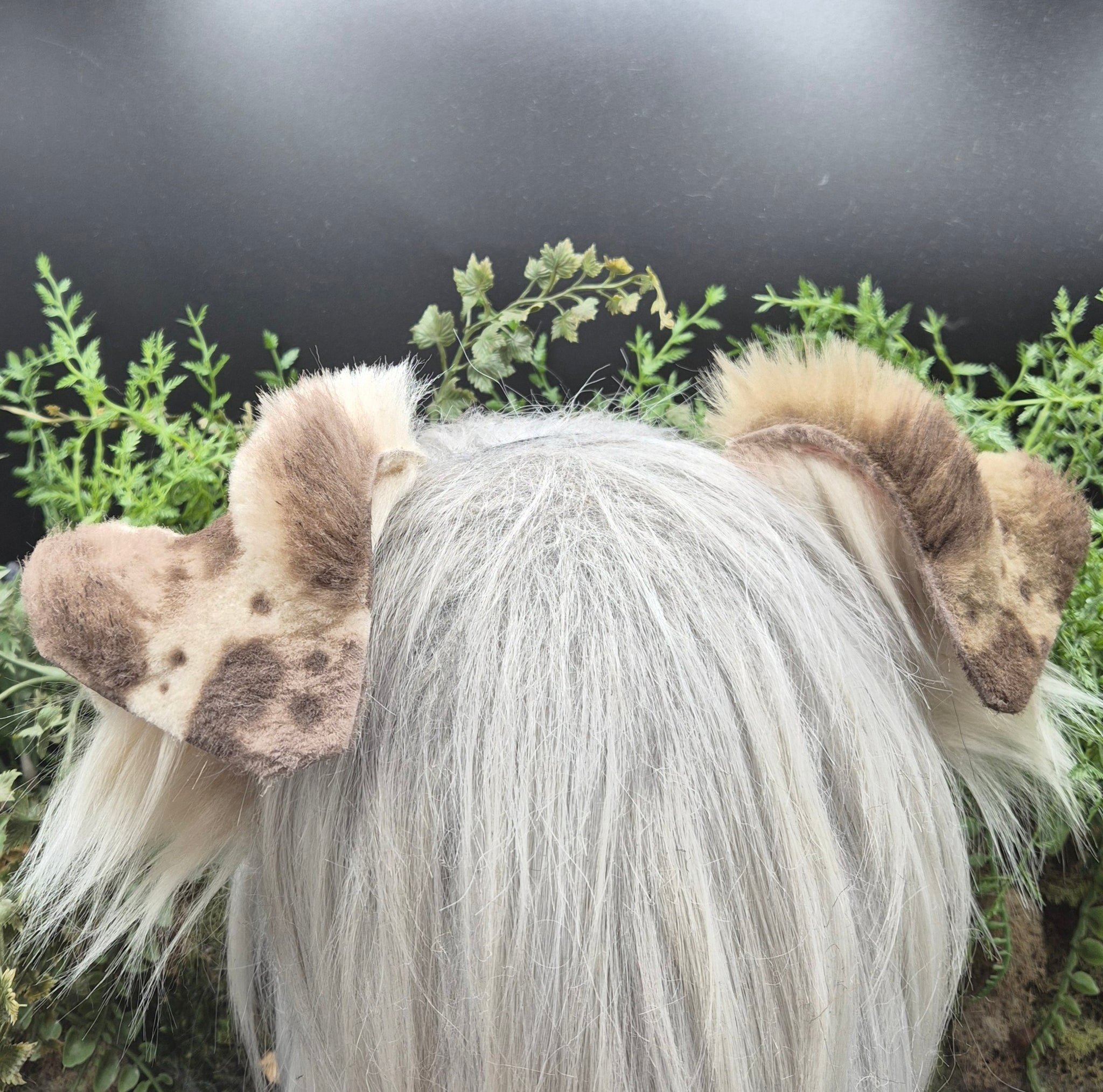 An adorable set of mismatched cream and light brown puppy ears with spotting brown spotting. These have a more sculpted look with puffy/fluffy portions on the ears. These can be flopped over, one flopped or one upright or both upright. To ensure the best quality for the longest period of time, please handle the airbrushed areas as little and carefully as possible while posing them. They're around 4in fully upright, fully wired and poseable and slide on the headband. For Sculpted ears make sure you gently fluff the fluffy areas of the fur on the outer ears back down toward the base. That will make sure they keep that sculpted look instead of looking flatter.